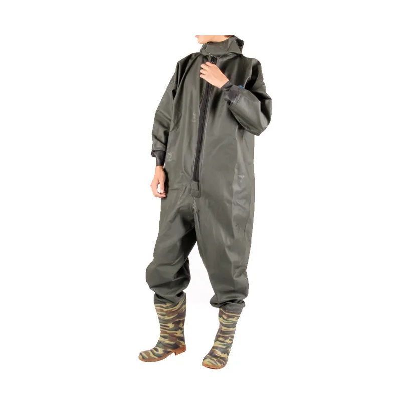 Φόρμα εργασίας ολόσωμη, μακρυμάνικη, με ενσωματωμένη γαλότσα, πλήρως αδιάβροχη, από εξαιρετικά ανθεκτικό υλικό υψηλής ποιότητας που καθαρίζεται εύκολα και δεν ερεθίζει το δέρμα.