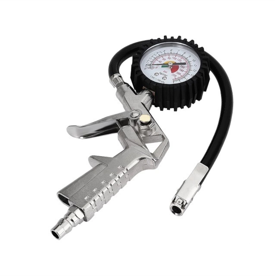 Πιστόλι φουσκώματος ελαστικών. Ιδανικό για ποδήλατα. Καλιμπραρισμένες ενδείξεις. Μεγάλο μανόμετρο για εύκολο διάβασμα.