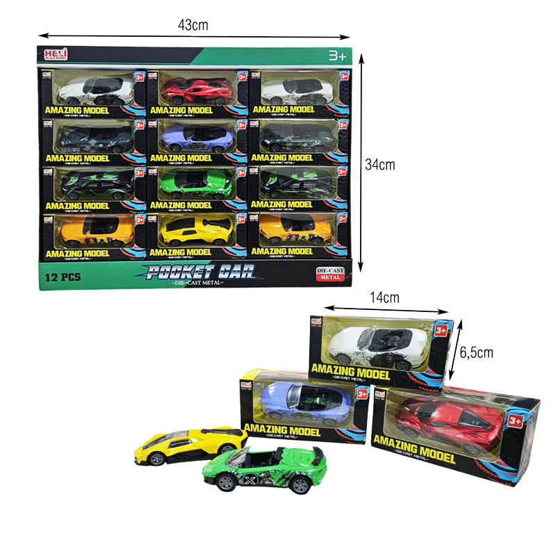 Το σετ περιλαμβάνει 12 μεταλλικά αυτοκινητάκια τύπου die-cast σε διάφορα χρώματα και σχέδια, ιδανικά για παιδιά άνω των 3 ετών. Προσφέρουν ατελείωτη διασκέδαση και αντοχή στο παιχνίδι.