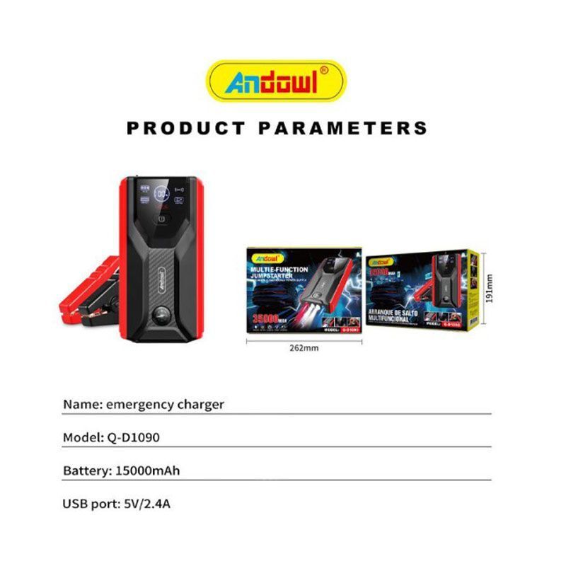 Andowl Φορητός Εκκινητής Μπαταρίας Αυτοκινήτου 12V με Power Bank / USB / Φακό Q-D1090 – Multi-function car jump starter