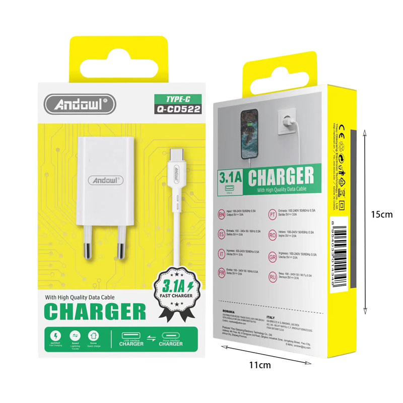 Ο φορτιστής με καλώδιο Type-C είναι η ιδανική επιλογή για γρήγορη και ασφαλή φόρτιση των συσκευών σας, προσφέροντας υψηλή απόδοση και αξιοπιστία.