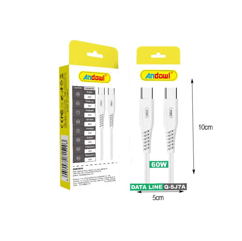 Andowl Καλώδιο δεδομένων Type-c σε Type-c 60W Q-SJ7A – Data Cable
