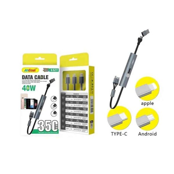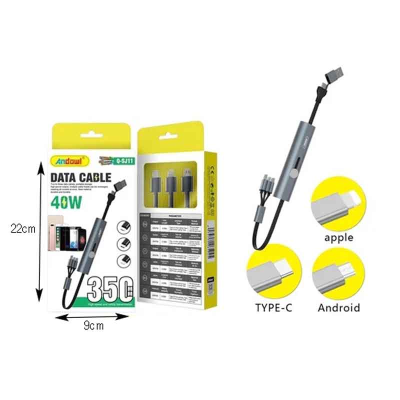 Περιλαμβάνει ενσωματωμένα καλώδια Micro USB, iOS (Lightning) και Type-C, επιτρέποντας τη σύνδεση και φόρτιση πολλαπλών συσκευών με ένα μόνο καλώδιο.