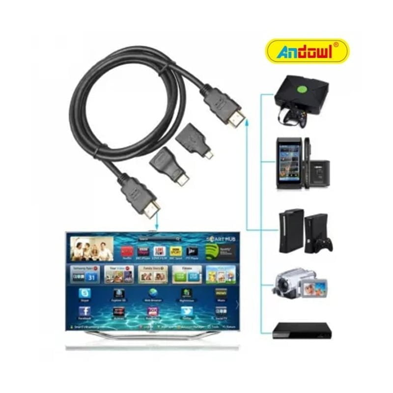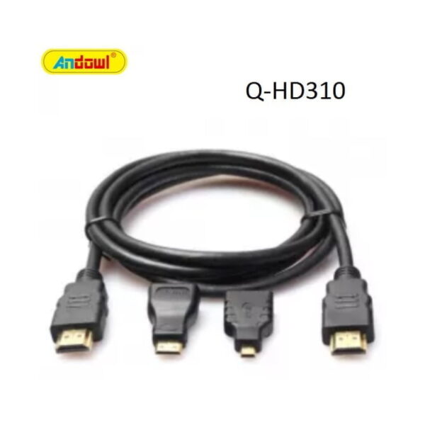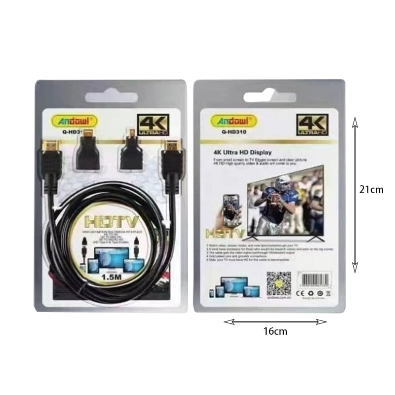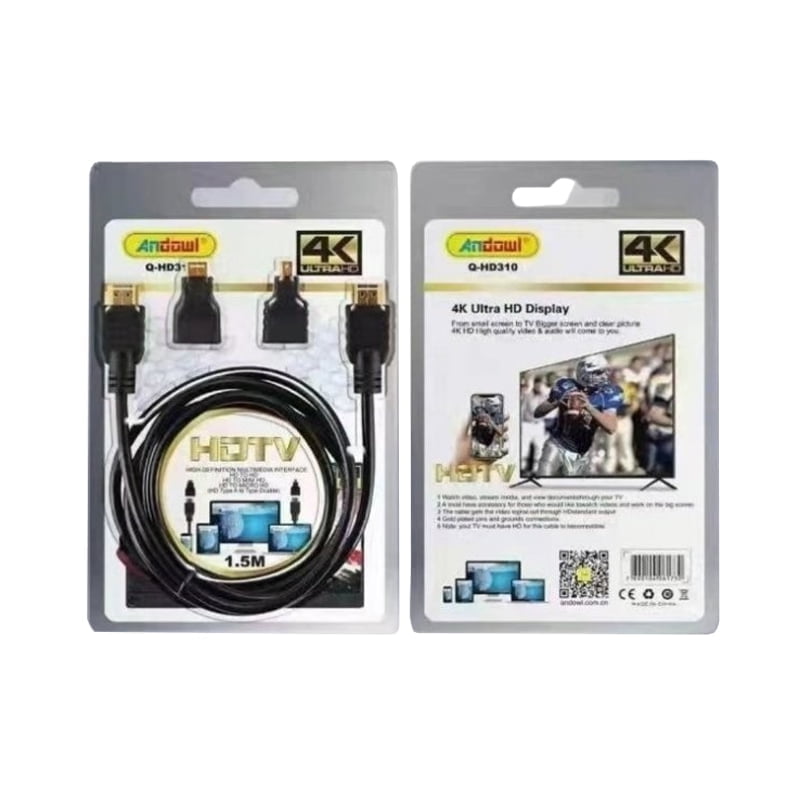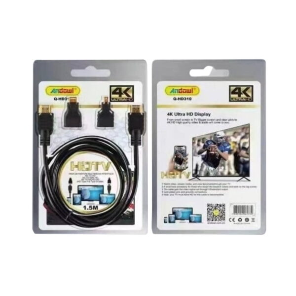Καλώδιο της Andowl, μήκους 1.5m, με 2 ακροδέκτες HDMI male για σύνδεση συσκευών όπως υπολογιστές, projectors και κονσόλες με οθόνες και τηλεοράσεις. Οι ακροδέκτες είναι επίχρυσοι για βελτιστοποίηση της απόδοσης και ταχύτατη αναμετάδοση δεδομένων χωρίς παρεμβολές.