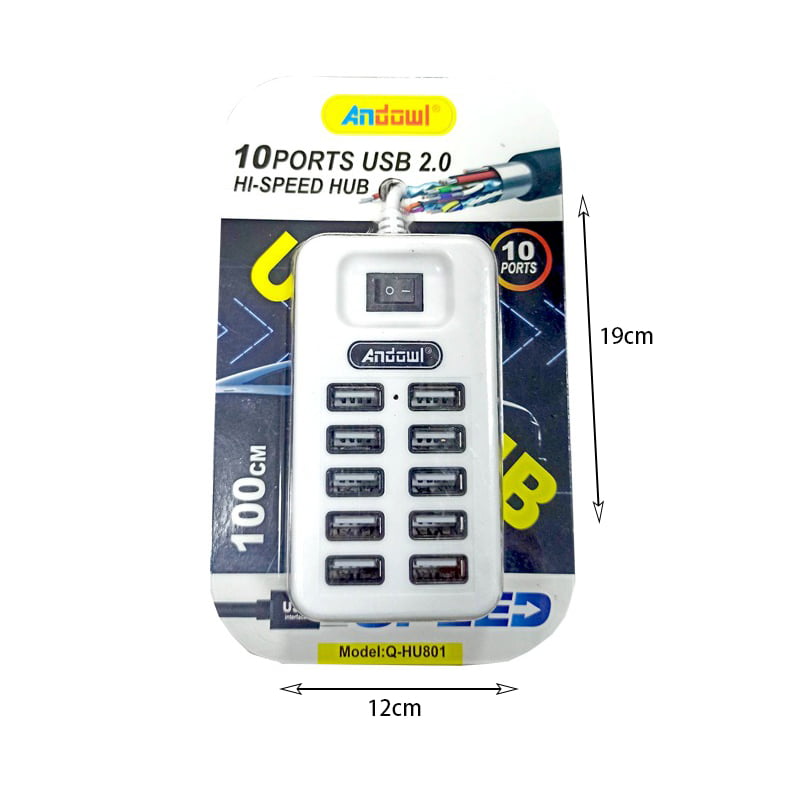 Το USB hub της εταιρείας Andowl διαθέτει 10 θύρες εξόδου USB 2.0, κατάλληλες για να συνδέσετε ταυτόχρονα στον υπολογιστή, συσκευές όπως ποντίκια, στικάκια, εξωτερικούς σκληρούς δίσκους, πληκτρολόγια και πολλά άλλα. Τροφοδοτείται μέσω του καλωδίου USB που συνδέεται στον υπολογιστή σας.
