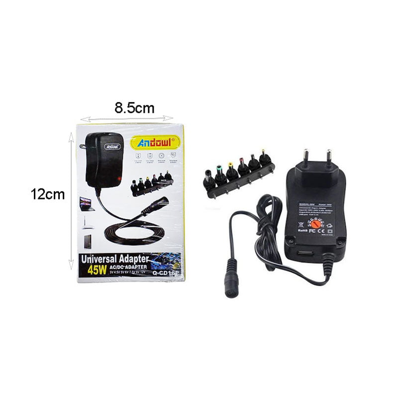 Andowl Ρυθμιζόμενο Universal Τροφοδοτικό 3 έως 12V 45W με 6 βύσματα Q-CD16P- Universal Adapter