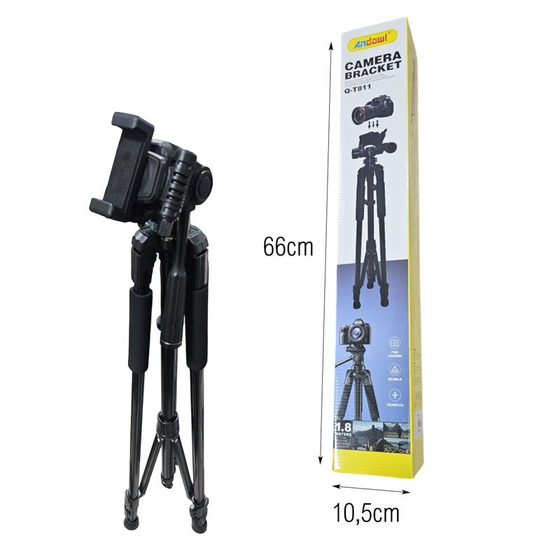 Το τρίποδο κάμερας Andowl Q-T811 είναι μια πρακτική και σταθερή λύση για φωτογράφους και βιντεογράφους που θέλουν επαγγελματικά αποτελέσματα. Διαθέτει ρυθμιζόμενο ύψος έως 1,8 μέτρα, ελαφριά αλλά ανθεκτική κατασκευή και αντιολισθητικά ποδαράκια για μέγιστη σταθερότητα. Η κεφαλή του περιστρέφεται και ρυθμίζεται εύκολα, προσφέροντας πολλαπλές γωνίες λήψης, ενώ διαθέτει και βάση για κινητό τηλέφωνο. Περιλαμβάνει θήκη μεταφοράς για άνετη αποθήκευση και εύκολη μεταφορά.