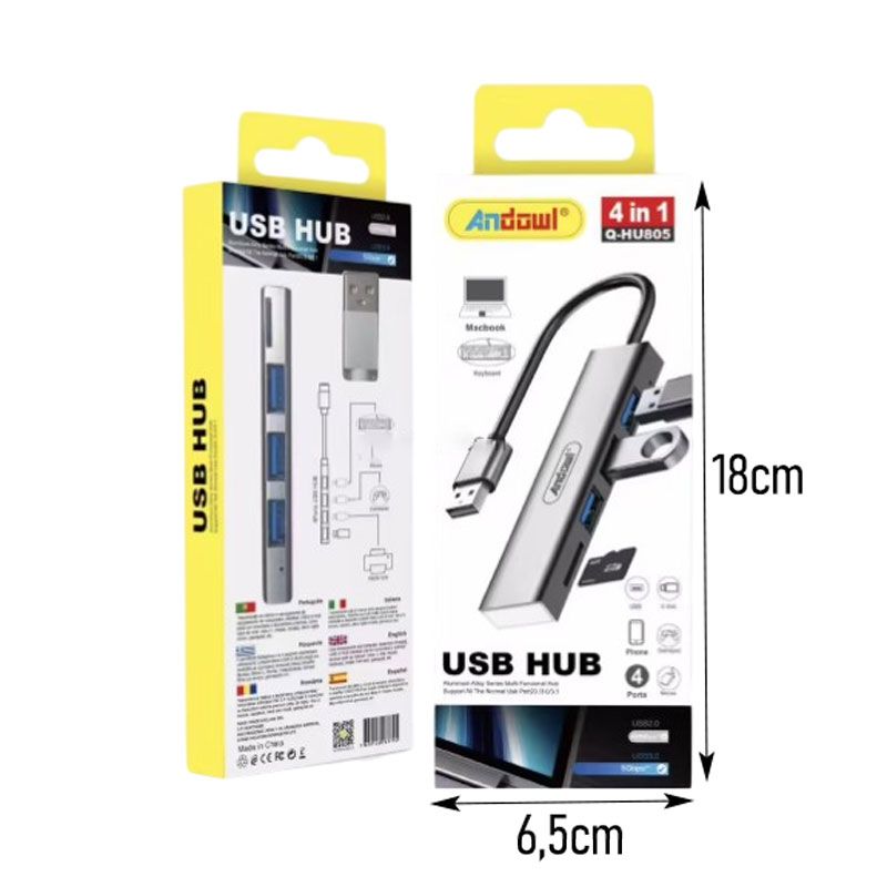 Το USB Hub Andowl 4 σε 1 προσφέρει την ιδανική λύση για να επεκτείνετε τις θύρες σύνδεσης του υπολογιστή ή του laptop σας. Διαθέτει 4 θύρες USB που σας επιτρέπουν να συνδέσετε ταυτόχρονα διάφορες συσκευές, όπως πληκτρολόγιο, ποντίκι, USB stick, smartphone και άλλα αξεσουάρ.