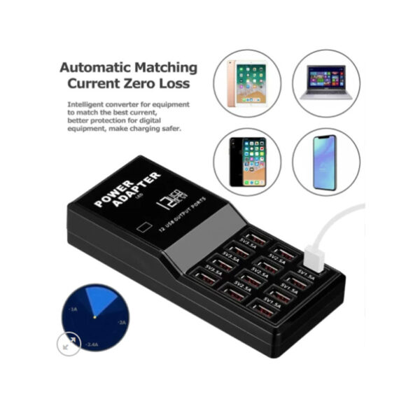 Ταυτόχρονη φόρτιση 12 συσκευών – Η τεχνολογία έξυπνων θυρών μεγιστοποιεί τη συμβατότητα με Android, Apple και άλλες συσκευές, επιτρέποντας ταχύτητες φόρτισης έως και 10 αμπέρ σε 12 θύρες ή 1,20 αμπέρ ανά θύρα.