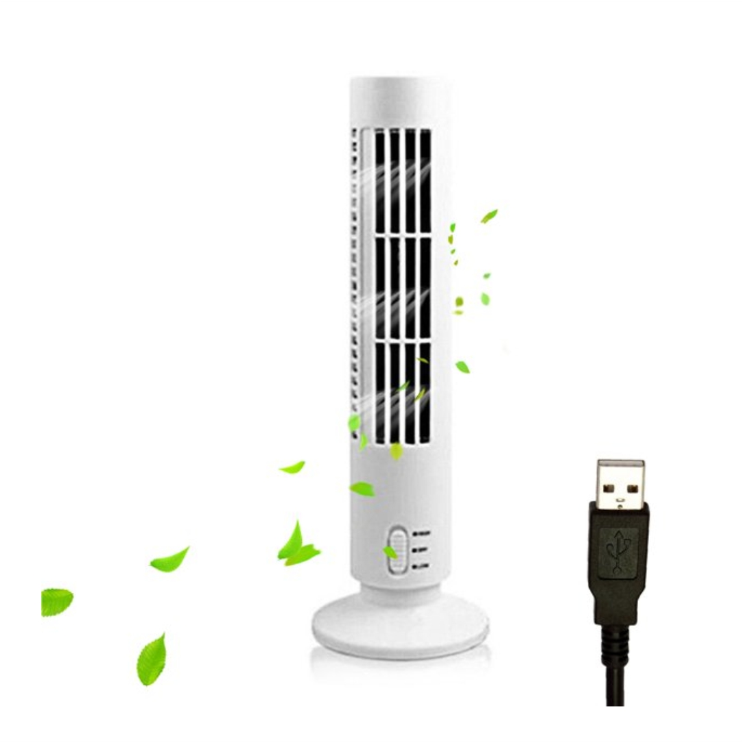 Ανεμιστήρας πύργος. Διαθέτει 2 ταχύτητες. Λειτουργεί είτε με σύνδεση στο laptop ή στον υπολογιστή, είτε με καλώδιο USB στην πρίζα. Ισχύς 2.5W, 5V, 0.5A. Διαστάσεις 60x330x105mm.