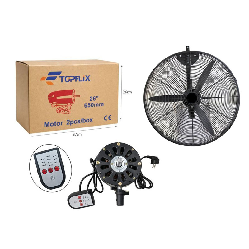 Ισχυρός ανεμιστήρας τοίχου 26 ιντσών, ιδανικός για επαγγελματικούς και οικιακούς χώρους, όπως καταστήματα, αποθήκες και εργαστήρια. Με ισχύ 250W και λειτουργία στα 220V-50Hz, εξασφαλίζει αποτελεσματική κυκλοφορία αέρα και άμεση δροσιά.