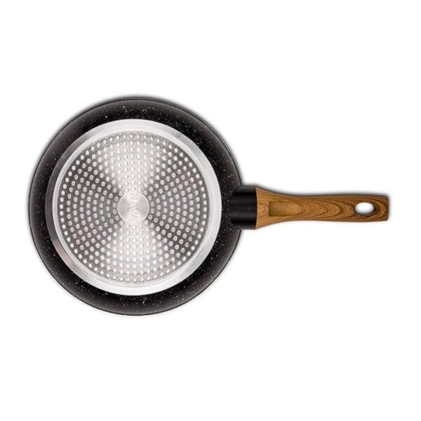 Αντικολλητικό τηγάνι της εταιρείας TnS. Ένα σκεύος το οποίο χρησιμεύει στο να τηγανίζετε γρήγορα και εύκολα. Επιπλέον, είναι συμβατό με όλες τις εστίες (αερίου, κεραμικές, επαγωγικές, ηλεκτρικές). Μέγεθος 28×5.5cm. Κατασκευασμένο από αλουμίνιο, με εξωτερική επίστρωση Marble, με εσωτερική επίστρωση αντικολλητική Marble και χειρολαβή decor ξύλου.