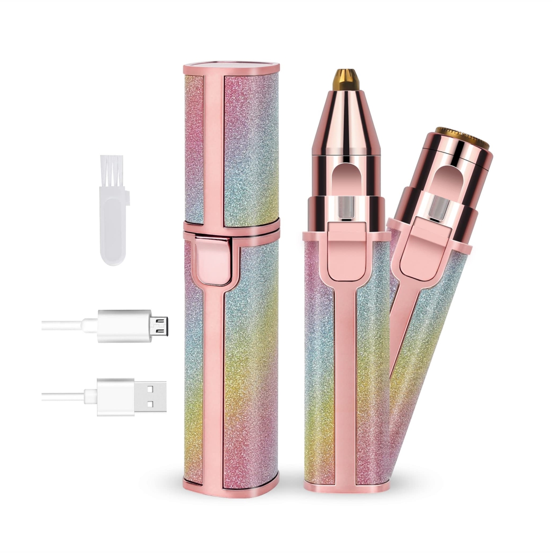 Αποτριχωτική μηχανή προσώπου. Ιδανική για σημεία του προσώπου που απαιτούν κινήσεις ακριβείας, άνω χείλος, πιγούνι, μέτωπο, σχήμα φρυδιών και μύτη. Είναι πιο γρήγορη και αποτελεσματική από τα απλά τσιμπιδάκια. Λειτουργεί με επαναφορτιζόμενη μπαταρία. Περιλαμβάνεται καλώδιο USB και δύο κεφαλές. Διαστάσεις 13×2.5cm.