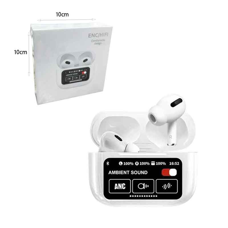 Ασύρματα ακουστικά Bluetooth με μοντέρνο σχεδιασμό και θήκη φόρτισης που διαθέτει έγχρωμη οθόνη αφής για άμεσο έλεγχο λειτουργιών. Υποστηρίζουν τεχνολογία ενεργής ακύρωσης θορύβου (ENC), προσφέροντας καθαρό και ποιοτικό ήχο, καθώς και λειτουργία Ambient Sound για επίγνωση του περιβάλλοντος όταν χρειάζεται.