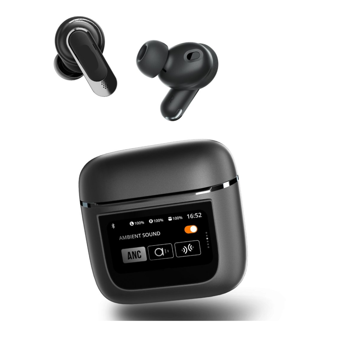 充电盒中的无线耳机配有 1.45 英寸触摸屏,让您无需触摸智能手机或打开随附的应用程序,甚至无需设置背景照片,即可直接访问基本功能和信息。它们的电池寿命很长。使用无线耳机,您将享受前所未有的音乐享受,这要归功于强大的驱动器,可提供响亮、清晰的声音和深沉的低音而不失真。无线耳机通过蓝牙 5.3 连接到您的移动设备(通过快速配对自动连接到 Android 设备,通过快速配对自动连接到 Windows 10 PC)以实现无缝连接。