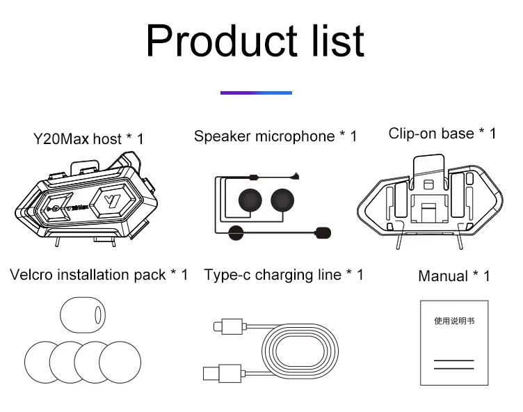 *Περιλαμβάνεται 1 συσκευή ενδοεπικοινωνίας, μικρόφωνο, βάσεις τοποθέτησης και καλώδιο φόρτισης.