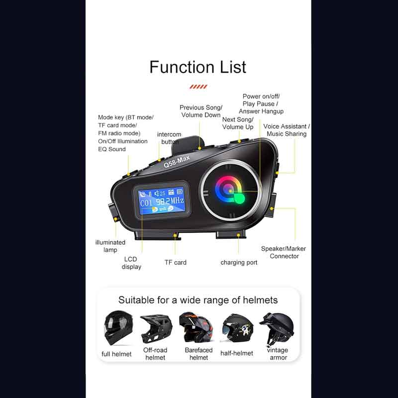 Ασύρματη Ενδοεπικοινωνία Μοτοσικλέτας Q58 – Max Helmet Wireless Earphone