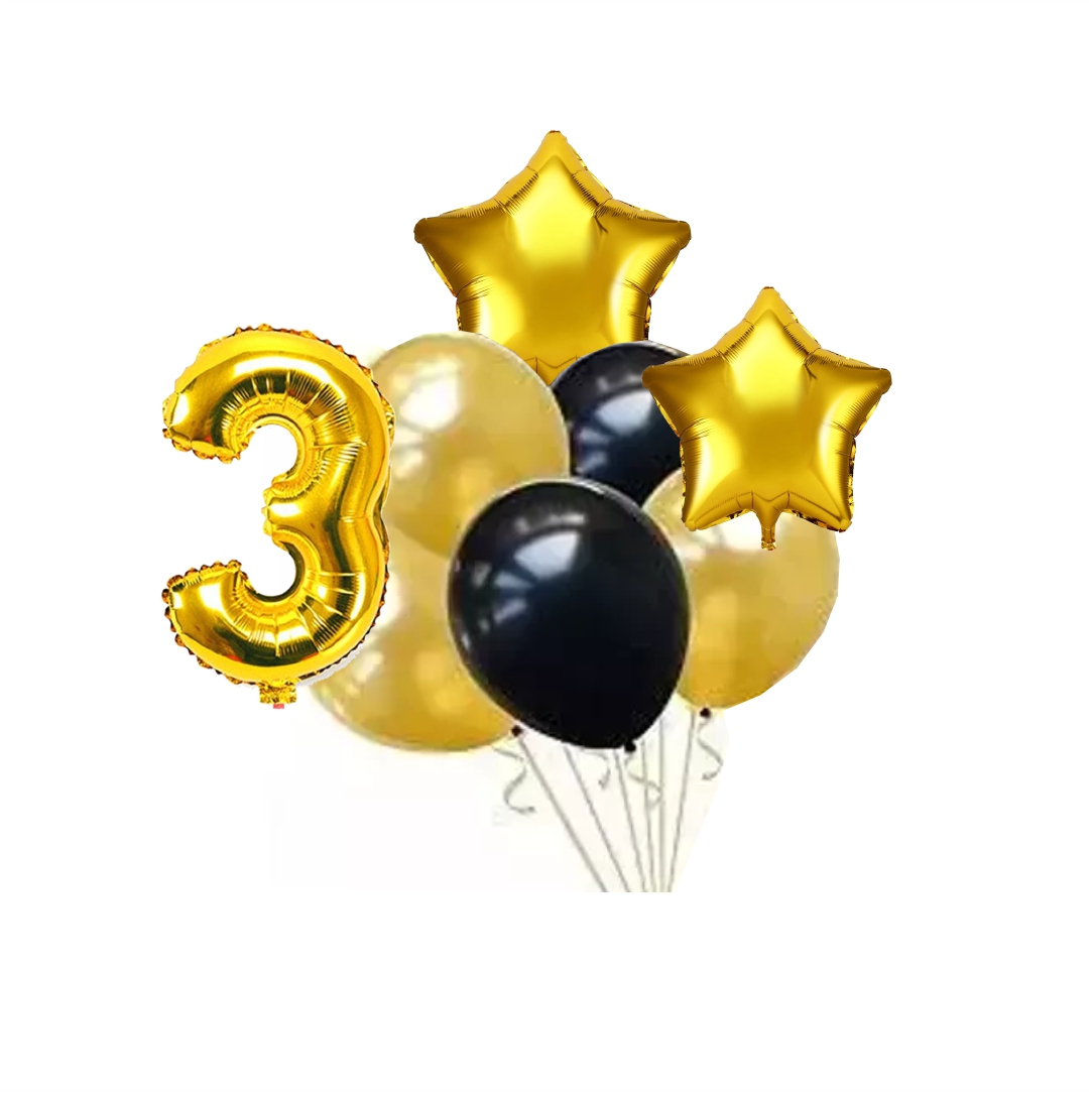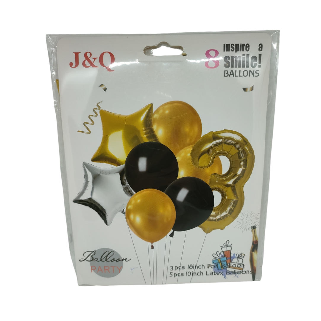 Συσκευασία μπαλονιών 8 τεμαχίων με τον αριθμό 3. Περιλαμβάνει 3 τεμάχια 18 ιντσών κατασκευασμένα από foil και 5 τεμάχια 10 ιντσών latex. Kατάλληλα για τη διακόσμηση του χώρου σας ή κάποιας εκδήλωσης. Τα μπαλόνια αποστέλλονται ξεφούσκωτα. Συνιστάται να μην φουσκώσουν με περισσότερα λίτρα αέρα ή ήλιο από αυτά που ενδείκνυνται από τον κατασκευαστή καθώς υπάρχει κίνδυνος να σκάσουν.