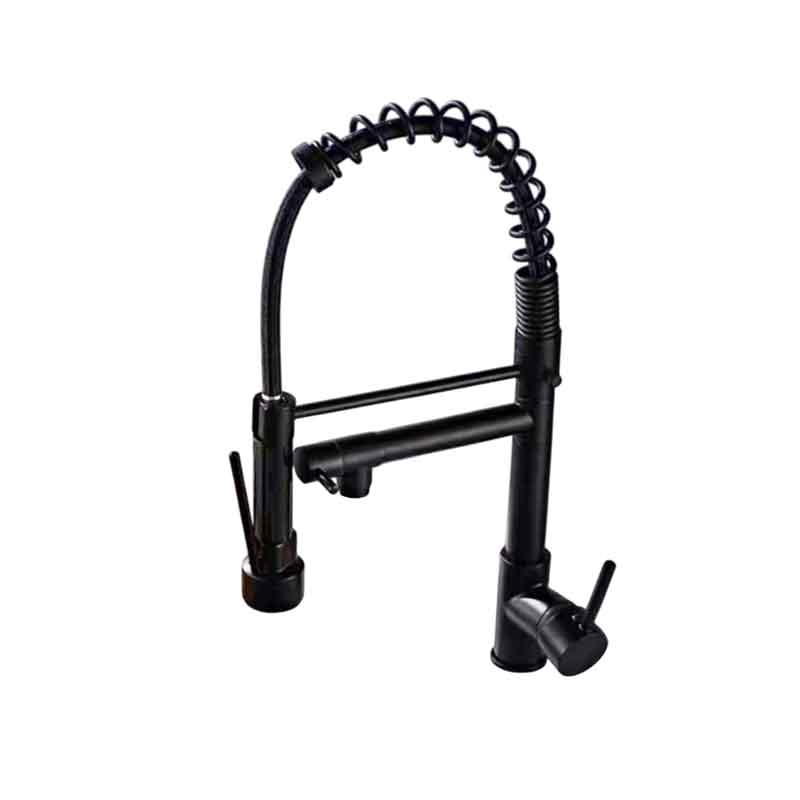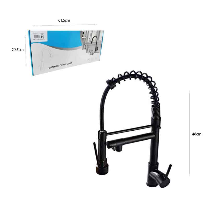 Η μοντέρνα μπαταρία κουζίνας σε μαύρο ματ χρώμα συνδυάζει κομψό σχεδιασμό και πρακτικότητα. Διαθέτει ψηλό τόξο με ελατήριο και εύκαμπτο ντους που τραβιέται, προσφέροντας άνεση στο πλύσιμο μεγάλων σκευών και ευκολία στην καθημερινή χρήση. Με ύψος 48 cm και στιβαρή κατασκευή, αποτελεί ιδανική επιλογή για κάθε σύγχρονη κουζίνα.