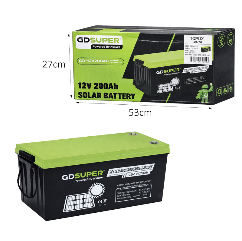 Η μπαταρία GD Super 12V 200Ah αποτελεί αξιόπιστη και υψηλής απόδοσης λύση αποθήκευσης ενέργειας για φωτοβολταϊκά συστήματα, αυτόνομα ενεργειακά έργα, τροχόσπιτα, σκάφη και εφεδρική παροχή ρεύματος. Κατασκευασμένη με τεχνολογία, προσφέρει μεγάλη διάρκεια ζωής, αυξημένη ασφάλεια και σταθερή απόδοση τάσης.