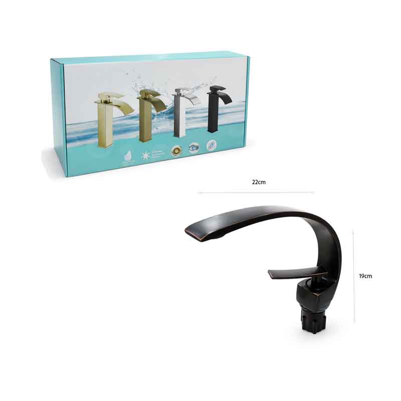 Μοντέρνα μπαταρία νιπτήρα σε μαύρο χρώμα με εντυπωσιακό καμπύλο σχεδιασμό που προσδίδει κομψότητα και σύγχρονο ύφος στο μπάνιο. Η ιδιαίτερη γραμμή της δημιουργεί αίσθηση πολυτέλειας, ενώ ταιριάζει ιδανικά σε μοντέρνους και minimal χώρους.