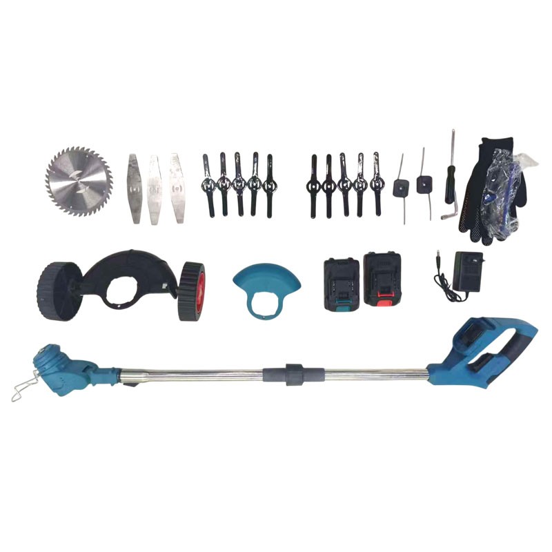 Περιλαμβάνονται: Δύο μπαταρίες, φορτιστής, προστατευτικά γάντια, και πολλαπλές λεπίδες (μεταλλικές, πλαστικές και δίσκος κοπής).