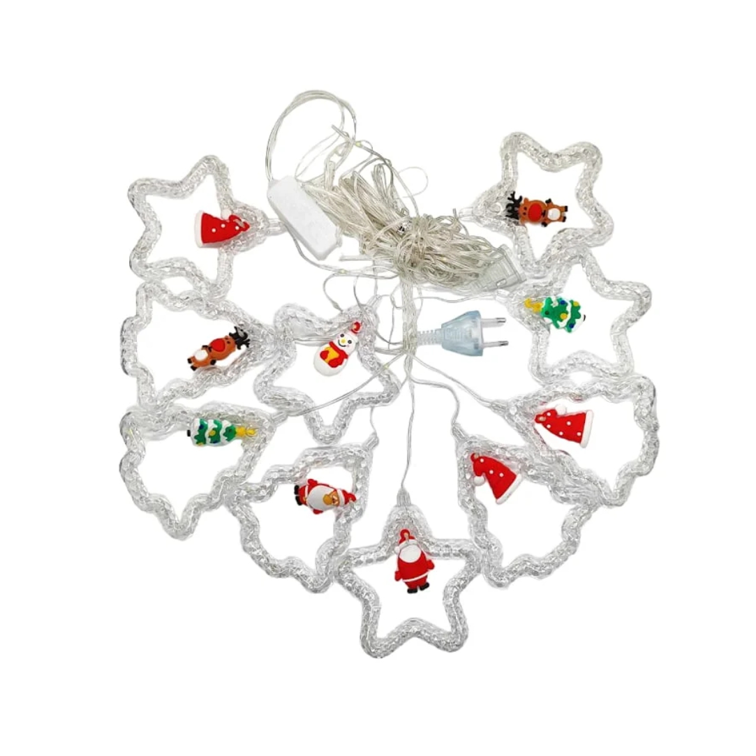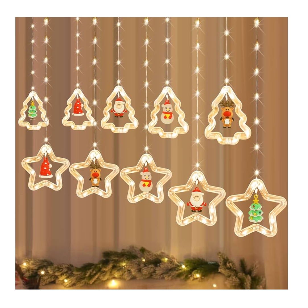 Χριστουγεννιάτικα δέντρα και αστέρια με λαμπάκια led κουρτίνα. Μοναδικός φωτισμός ιδανικός για να στολίσετε το χώρο σας. Διαθέτει 5 δέντρα και 5 αστέρια.