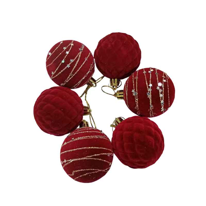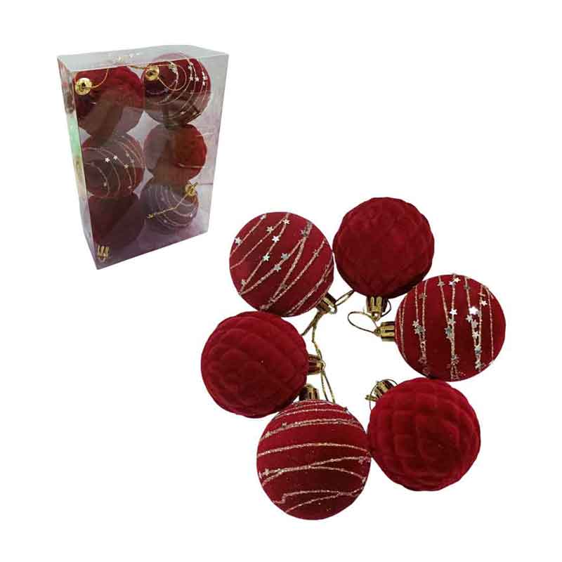 Χριστουγεννιάτικες Μπάλες Κόκκινες Βελούδινες 6τμχ 5.5cm – Red Velvet Christmas Balls