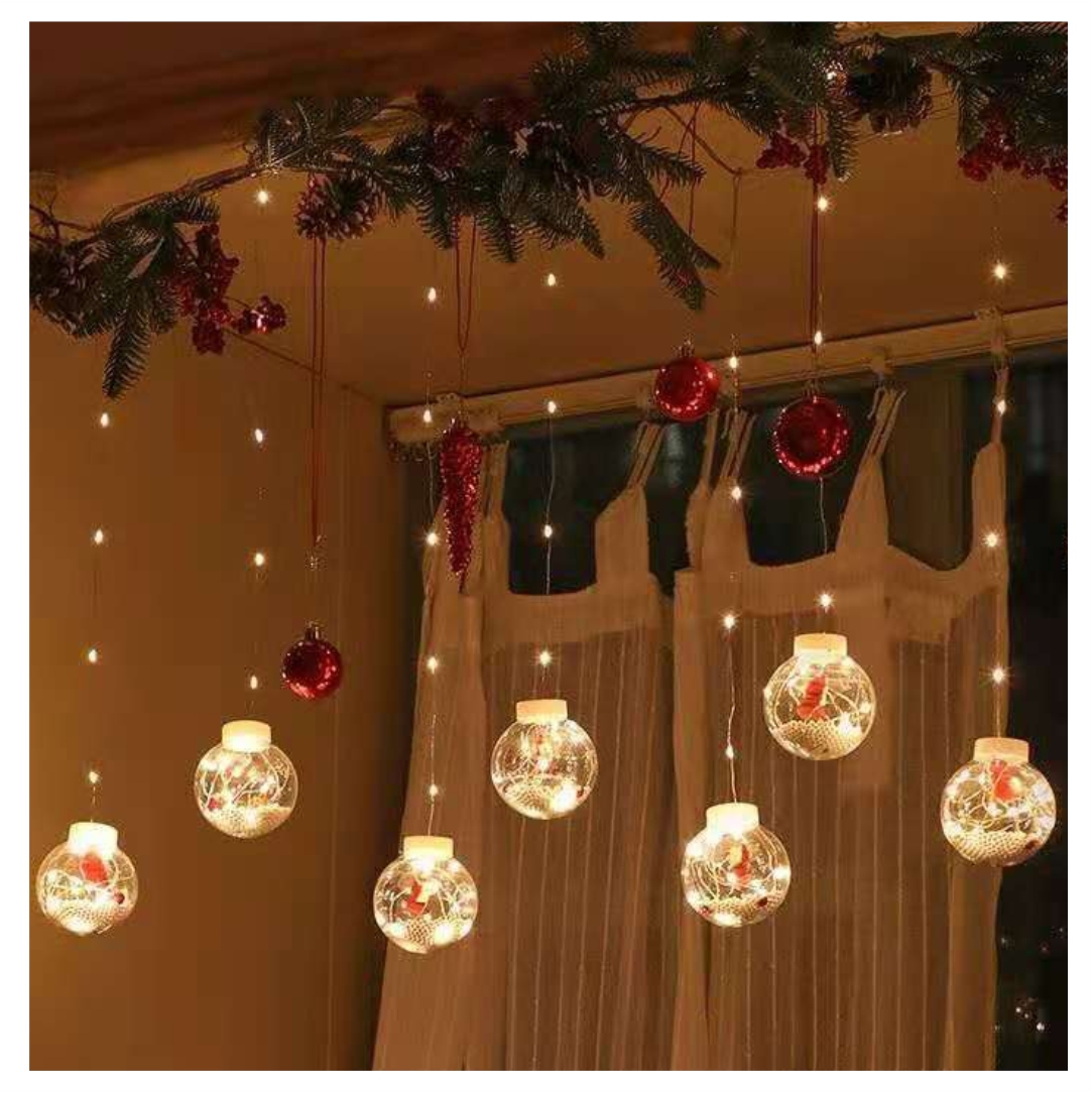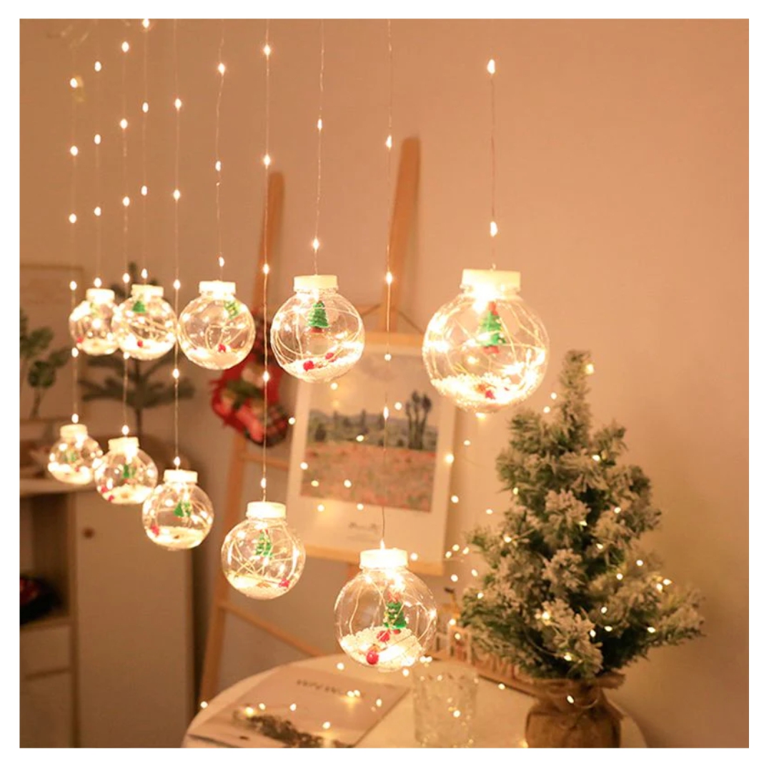 Χριστουγεννιάτικες μπάλες με λαμπάκια led κουρτίνα. Μοναδικός φωτισμός ιδανικός για να στολίσετε το χώρο σας. Διαθέτει 10 μπάλες, μήκος 3 μέτρα.
