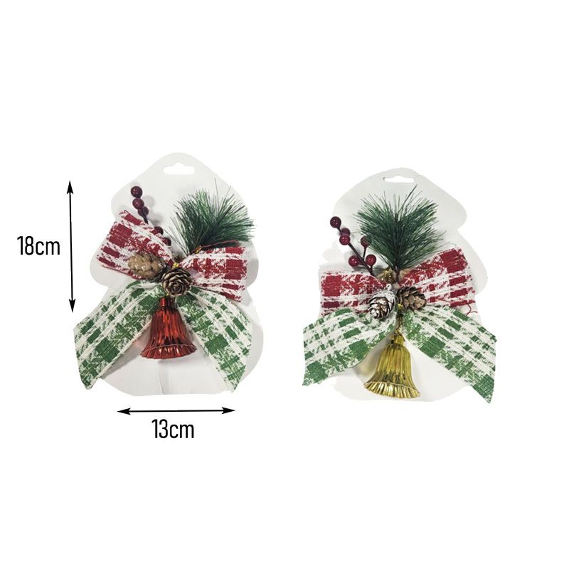Χριστουγεννιάτικη διακοσμητική κορδέλα με κουδούνι, κουκουνάρι, κλαδάκι και μούρα, ιδανική για στολισμό πόρτας, δέντρου ή γιορτινής σύνθεσης. Κατασκευασμένη με προσοχή στη λεπτομέρεια, συνδυάζει υφασμάτινη κορδέλα σε παραδοσιακά χρώματα με κουδούνι για ζεστή και εορταστική ατμόσφαιρα.