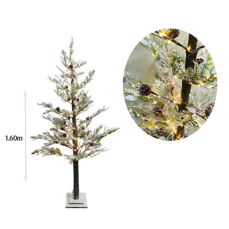 Εντυπωσιακό χριστουγεννιάτικο δέντρο ύψους 1,60m με 450 LED φωτάκια, χιονισμένο εφέ και διακοσμητικά κουκουνάρια. Είναι αδιάβροχο, κατάλληλο για χρήση σε εσωτερικό και εξωτερικό χώρο. Ο φυσικός του σχεδιασμός σε συνδυασμό με τα λαμπερά LED δημιουργούν μοναδική, ζεστή και γιορτινή ατμόσφαιρα.