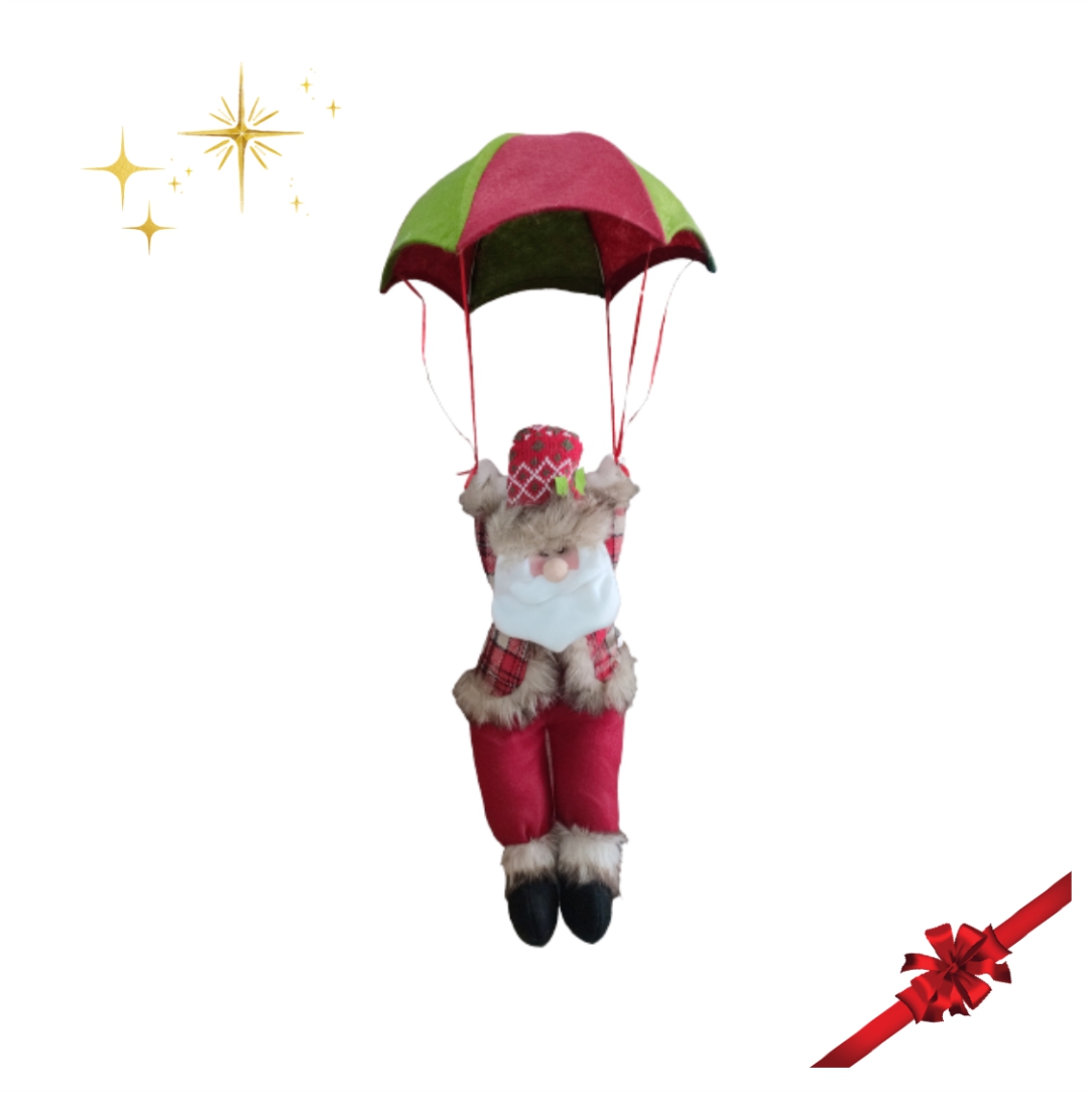 Χριστουγεννιάτικο διακοσμητικό Άγιος Βασίλης με αλεξίπτωτο. Τα διακοσμητικά έχουν διάσταση 70cm. Ιδανικό για να το τοποθετήσετε στον χώρο σας ή κρεμάστε το στο δέντρο σας. Κατάλληλο για να δημιουργήσετε μια εορταστική ατμόσφαιρα.