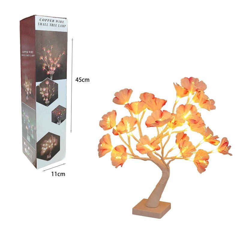 Χριστουγεννιάτικο διακοσμητικό φωτιζόμενο δεντράκι με λουλούδια θερμό χρώμα – Christmas copper wire small tree lamp warm light