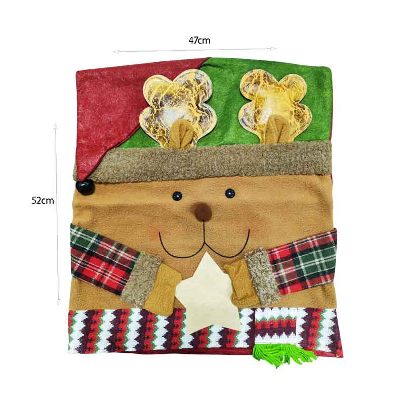 Υφασμάτινο κάλυμμα καρέκλας σε σχέδιο τάρανδο, με χαρούμενα χρώματα και εορταστικές λεπτομέρειες. Ιδανικό για να διακοσμήσετε την τραπεζαρία σας τις γιορτές και να δημιουργήσετε ζεστή, χριστουγεννιάτικη ατμόσφαιρα. Διαστάσεις: 47x52cm.
