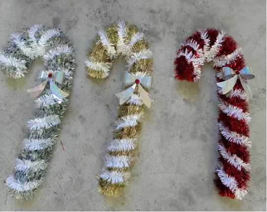 Χριστουγεννιάτικο στολίδι Γλειφιτζούρι μπαστούνι, μεγέθους 15x19cm, με επένδυση από πολύχρωμη γιρλάντα.