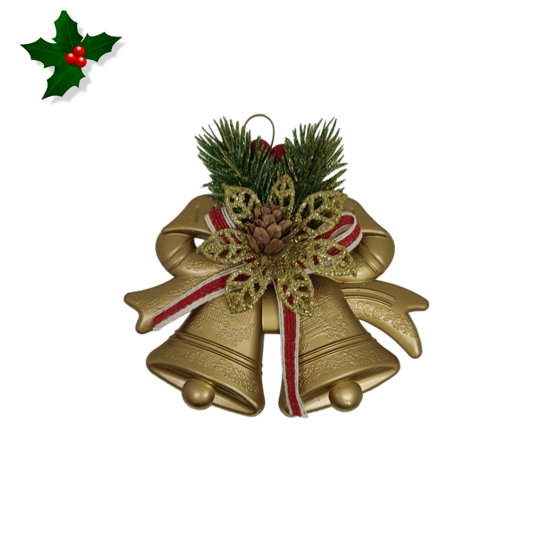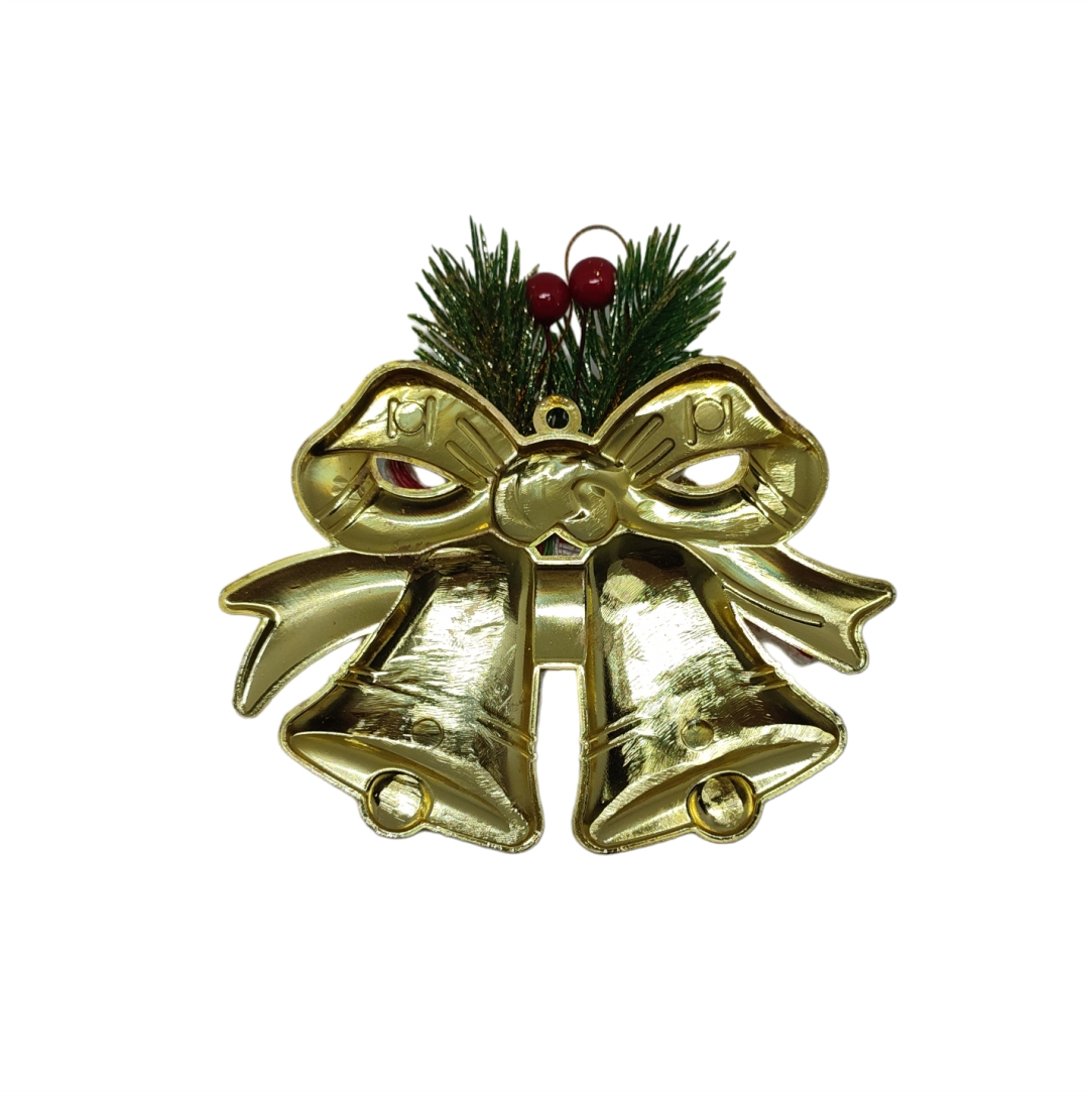 Χριστουγεννιάτικο στολίδι καμπάνες. Ιδανικά για να στολίστε το δέντρο σας και να δώσετε στο χώρο μια γιορτινή ατμόσφαιρα. Σε χρυσό χρώμα. Διαστάσεις 12x11cm.