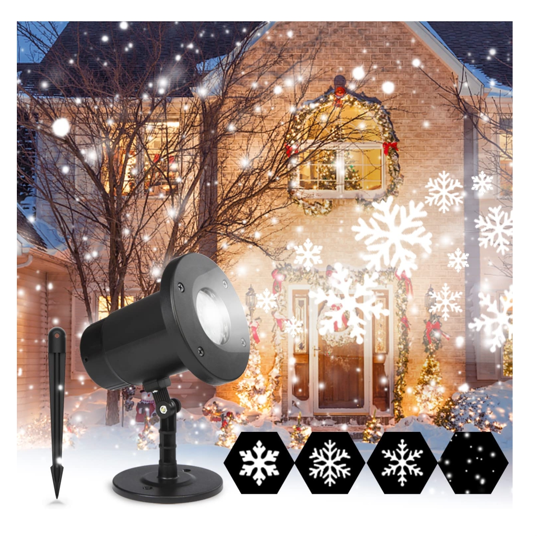 Χριστουγεννιάτικος προβολέας για μια υπέροχη Χριστουγεννιάτικη ατμόσφαιρα. Χωρίς εγκατάσταση. Τοποθετήστε τον στο χώμα ή το γρασίδι και το αποτέλεσμα θα αφήσει εσάς και τους αγαπημένους σας έκπληκτους. Βάλτε το στη πρίζα και γεμίστε το σπίτι σας με χιλιάδες νιφάδες χιονιού. Διαθέτει δυνατό φωτισμό ενώ προβάλει  κουκκίδες χιονιού και νιφάδες οι οποίες μπορούν να περιστρέφονται. Led 100-240V.