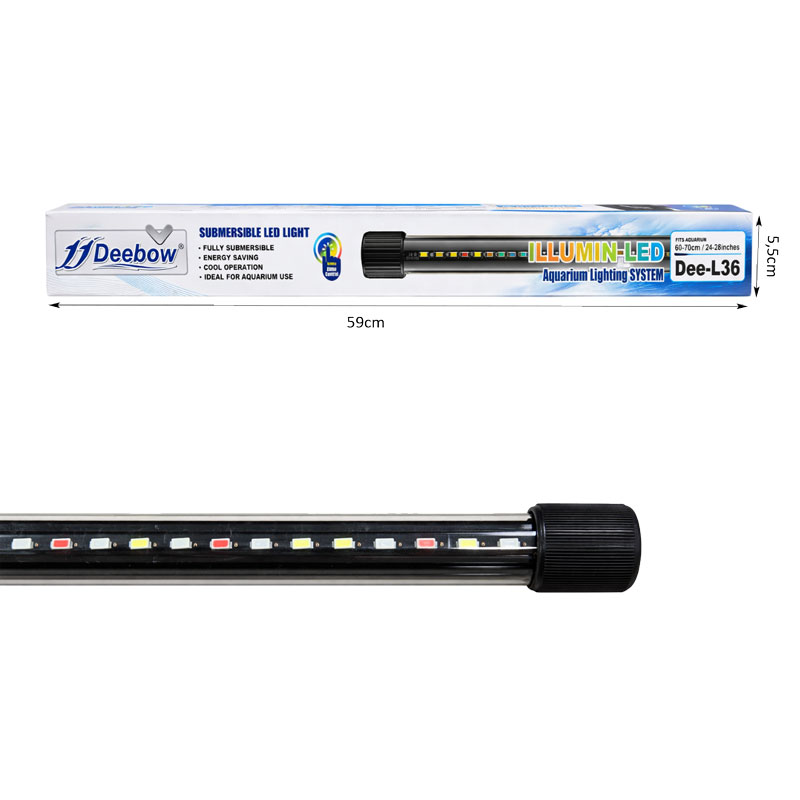 Ο υποβρύχιος φωτισμός ενυδρείου Deebow Dee-L36 είναι μια αξιόπιστη και ενεργειακά αποδοτική λύση για τον φωτισμό του ενυδρείου σας. Σχεδιασμένος για πλήρη υποβρύχια χρήση, προσφέρει ισχυρό και ομοιόμορφο φωτισμό που αναδεικνύει τα χρώματα των ψαριών και των φυτών, δημιουργώντας ένα εντυπωσιακό και φυσικό περιβάλλον μέσα στο ενυδρείο.