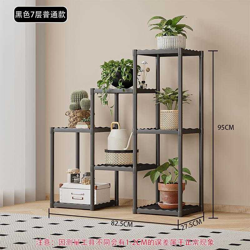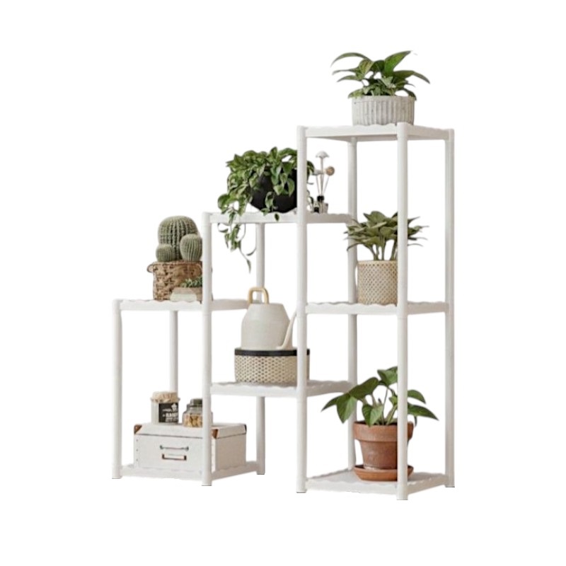 Διακοσμητική ραφιέρα δαπέδου με 7 τετράγωνα ράφια, συναρμολογούμενη, με μεταλλικό σκελετό και πλαστικά ανθεκτικά ράφια, ιδανική για την οργάνωση φυτών και την διακόσμηση χώρου.