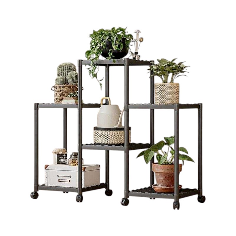 Διακοσμητική ραφιέρα δαπέδου με 6 τετράγωνα ράφια, συναρμολογούμενη, με μεταλλικό σκελετό και πλαστικά ανθεκτικά ράφια, ιδανική για την οργάνωση φυτών και την διακόσμηση χώρου.
