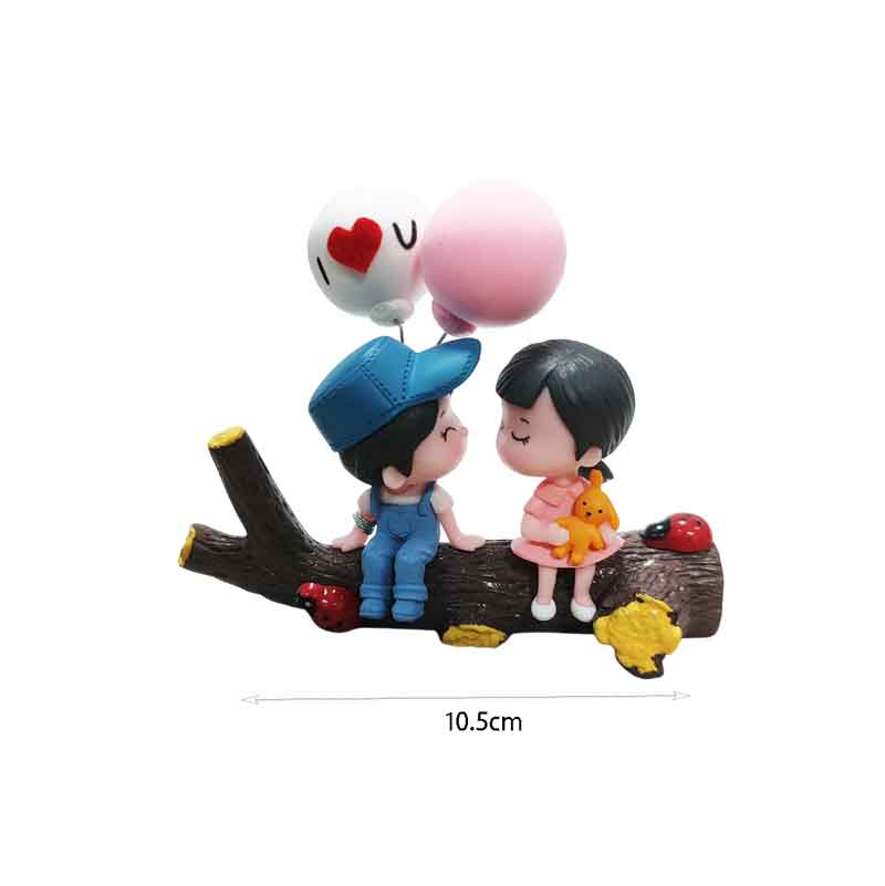 Χαριτωμένο διακοσμητικό αγαλματάκι με ζευγάρι παιδιών καθισμένων σε κορμό δέντρου και μπαλόνια, ιδανικό για ρομαντική και ζεστή διακόσμηση χώρου. Κατάλληλο για το σπίτι, το γραφείο ή ως δώρο για αγαπημένα πρόσωπα σε επετείους, γιορτές ή την ημέρα του Αγίου Βαλεντίνου. Διαθέτει προσεγμένη κατασκευή και λεπτομέρειες που προσθέτουν χαρακτήρα και γλυκύτητα στη διακόσμηση.