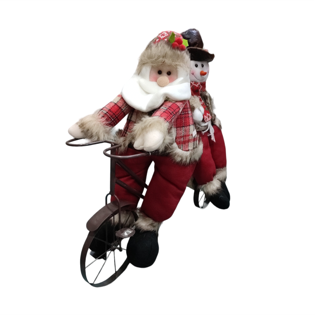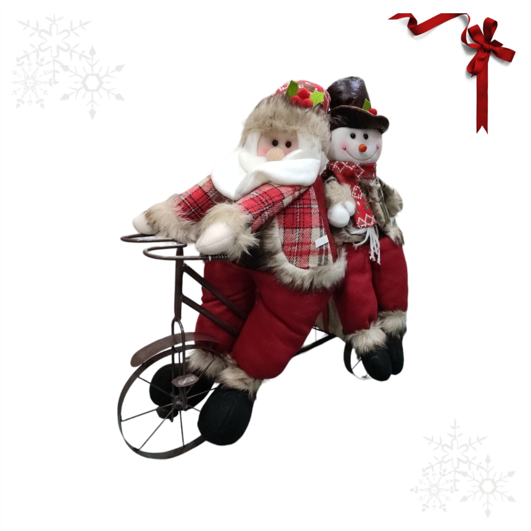 Χριστουγεννιάτικο διακοσμητικό ποδήλατο Άγιος Βασίλης – Χιονάνθρωπος. Τα διακοσμητικό ποδήλατο έχει διάσταση 50x70cm. Ιδανικό για να το τοποθετήσετε στον χώρο σας ή δίπλα στο δέντρο σας.