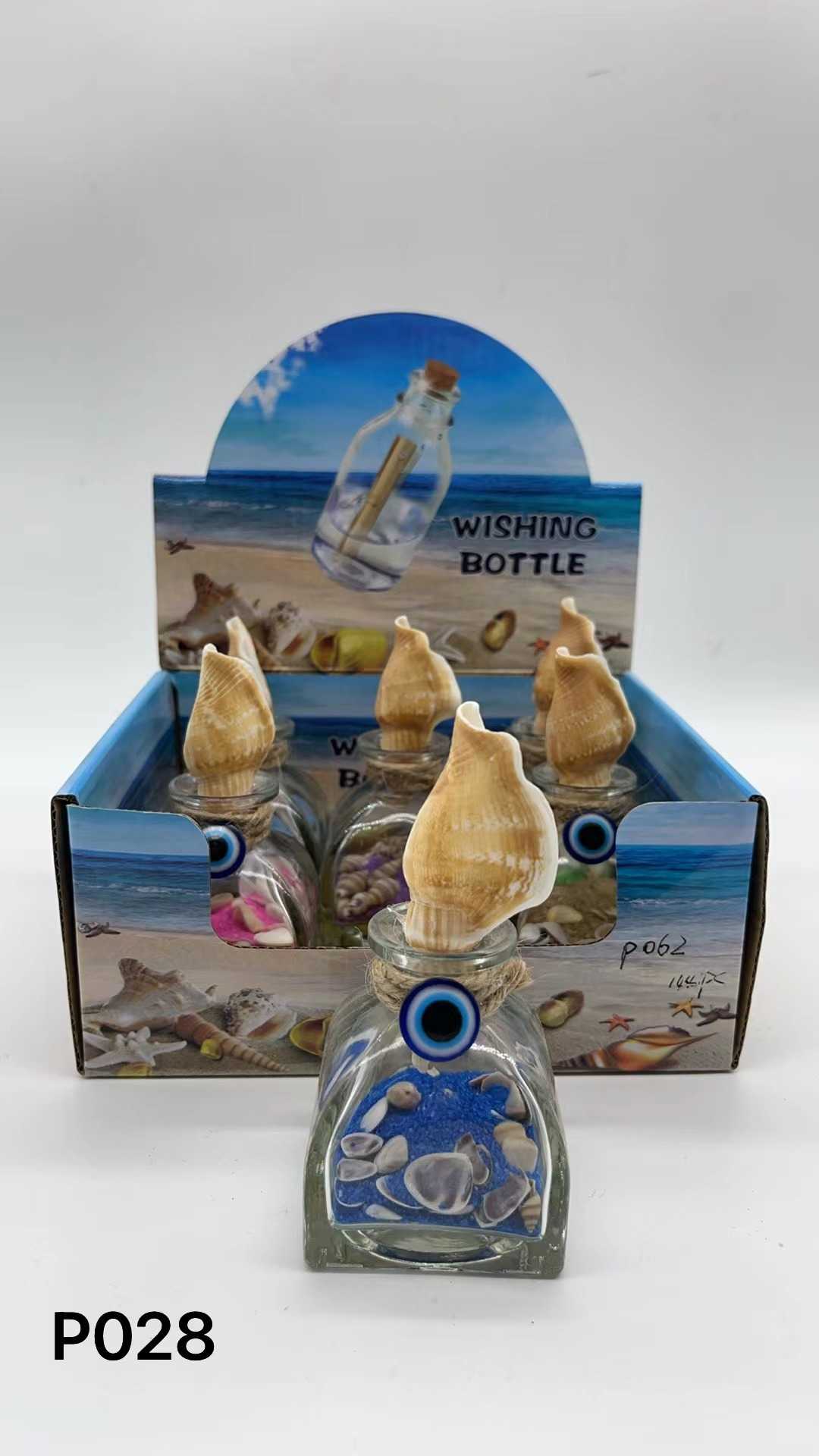 Χειροποίητο, διακοσμητικό Souvenir γυάλινο διαφανές μπουκαλάκι – Whishing Bottle, με γέμισμα από αληθινά κοχύλια και υπέροχες λεπτομέρειες που αντιπροσωπεύουν το καλοκαίρι και τη θάλασσα. Ιδανικό ως αναμνηστικό ταξιδιού ή δώρο.