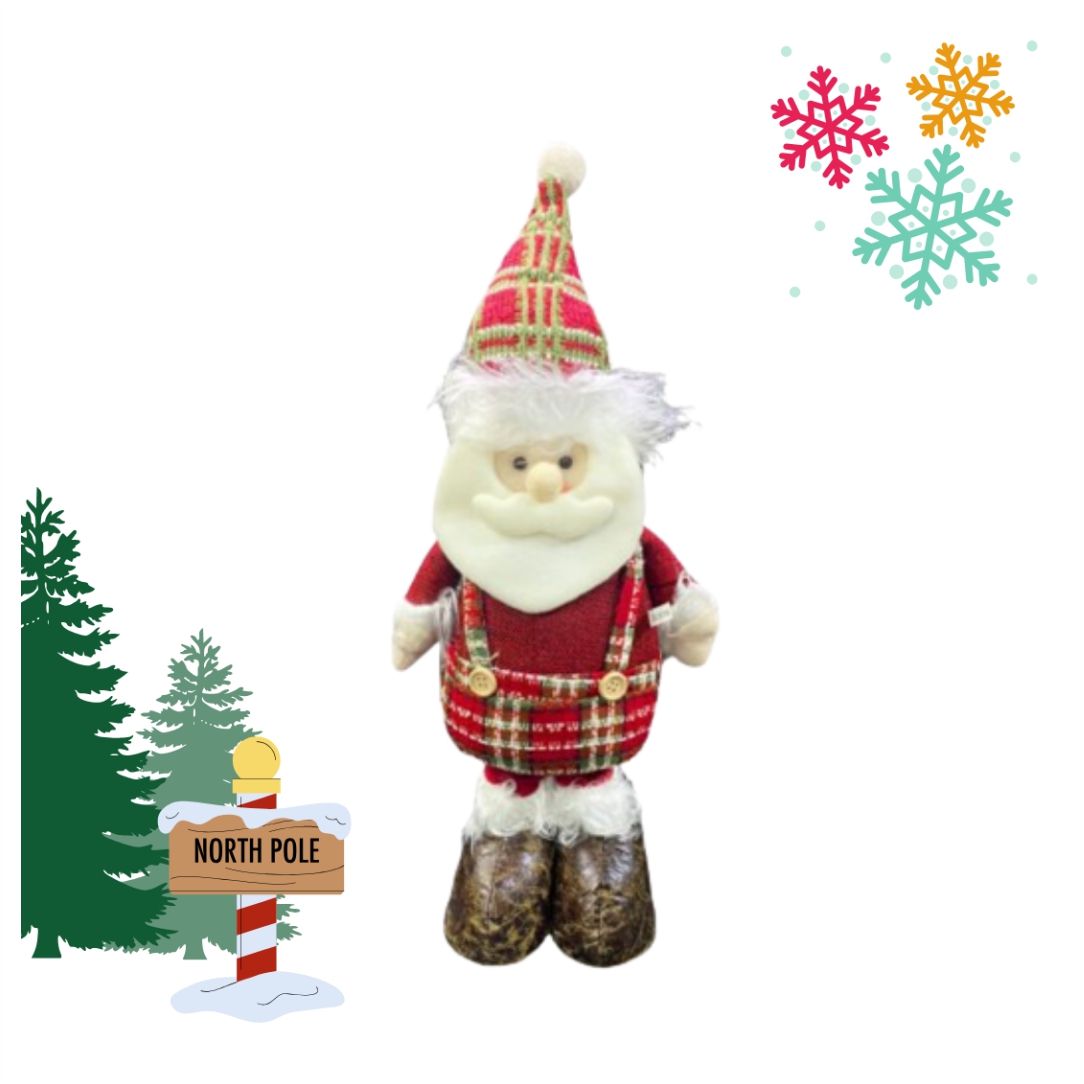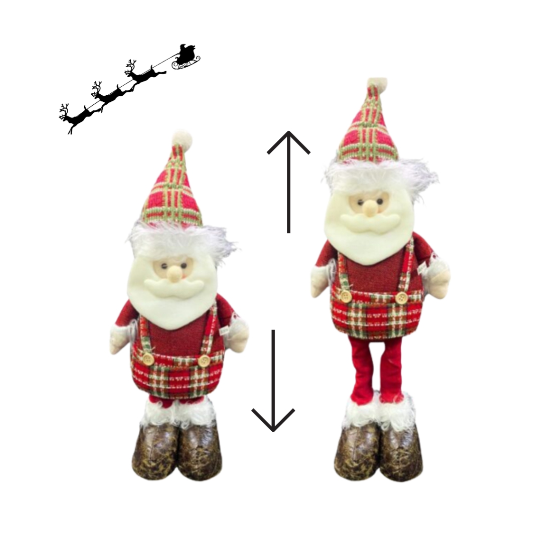 Διακοσμητικός Χριστουγεννιάτικος Άγιος Βασίλης με πτυσσόμενα πόδια. Ιδανικός για να στολίστε τον χώρο σας και να του δώσετε μια γιορτινή ατμόσφαιρα. Διαθέτει πτυσσόμενα πόδια, μπορείτε να τον προσαρμόσετε στο ύψος που θέλετε. Διαστάσεις με μαζεμένα τα πόδια του 38x19cm και με ανεβασμένα 54x19cm.