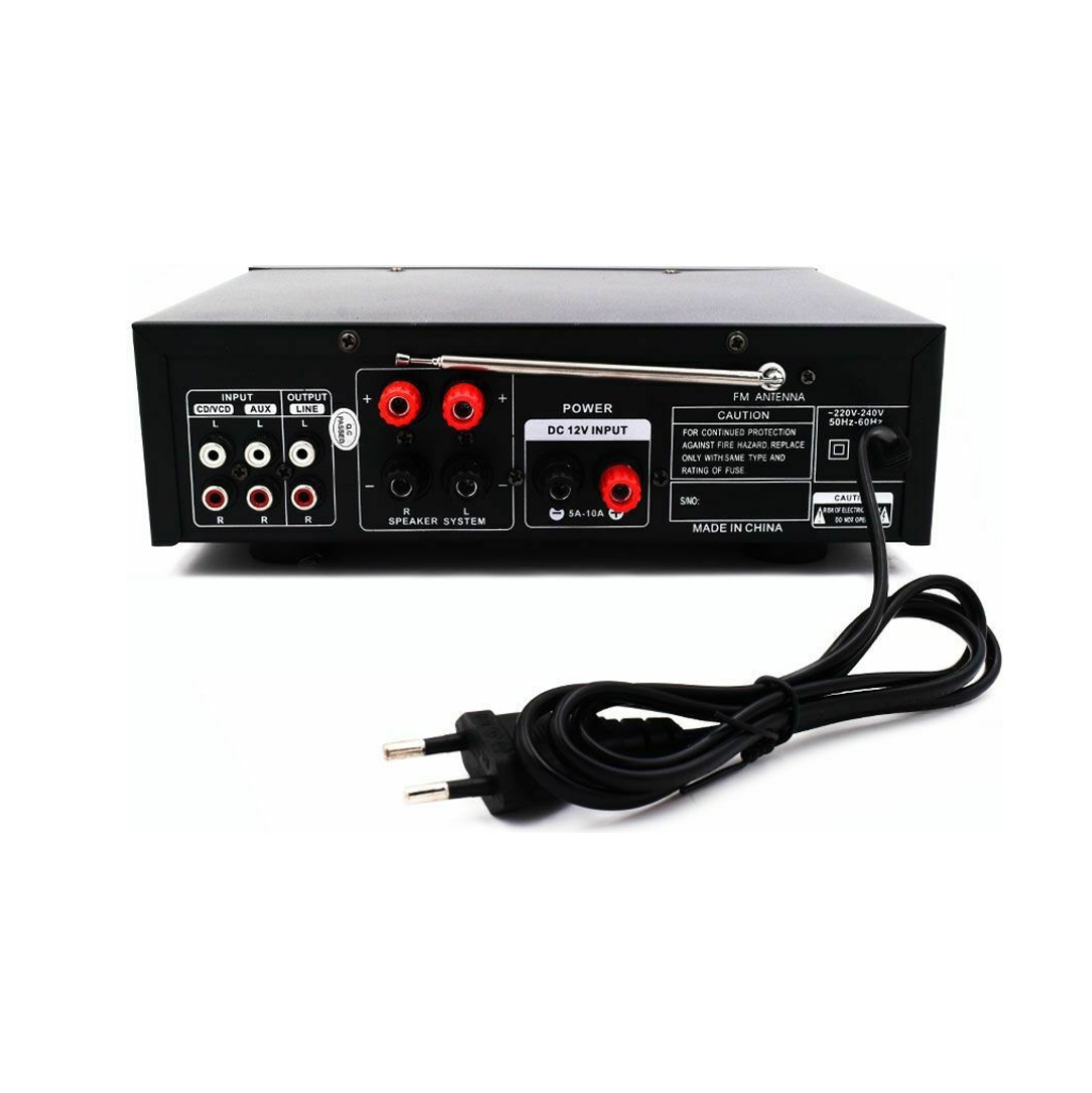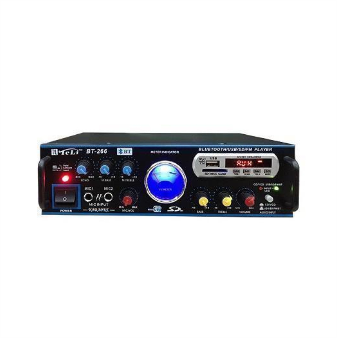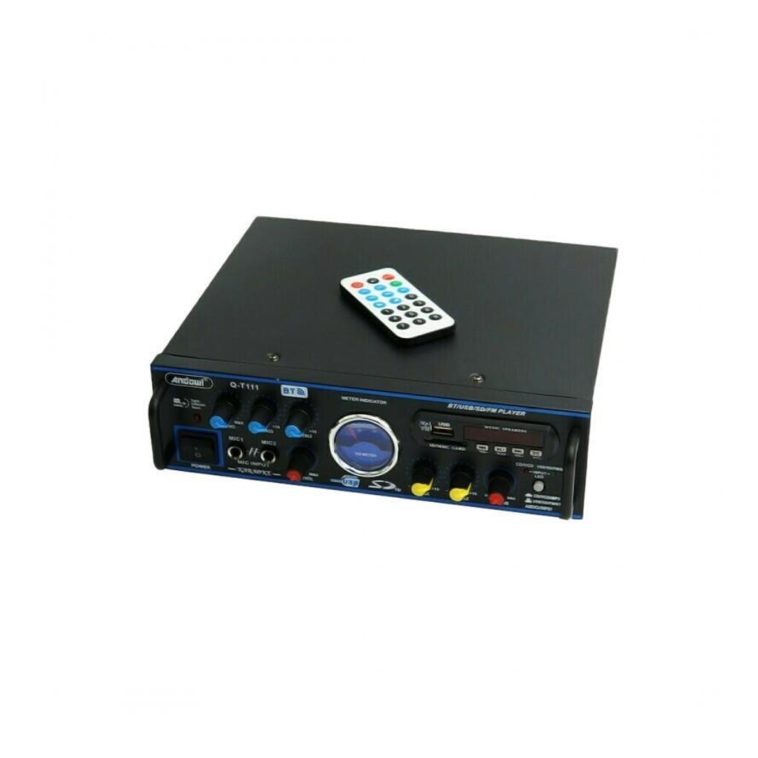 Ενισχυτής με λειτουργία Karaoke. Διαθέτει υποδοχή USB, SD. Διαθέτει Bluetooth, FM radio και χειριστήριο. Ισχύς εξόδου 50W + 50W. Δύο υποδοχές εισόδου μικροφώνου, σύστημα καραόκε στο σπίτι ή στο αυτοκίνητό σας. Με έλεγχο πρίμων, μπάσων και έντασης, πολύ εύκολο στη χρήση.