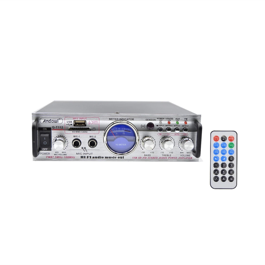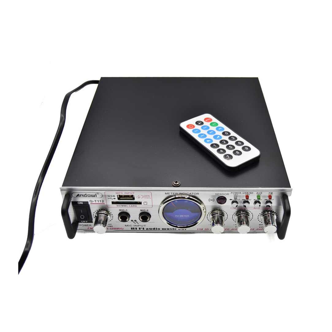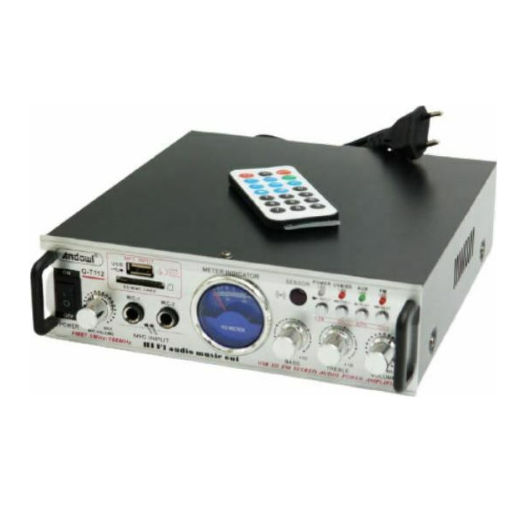 Ενισχυτής με λειτουργία Karaoke. Διαθέτει υποδοχή USB, SD. Διαθέτει Bluetooth, FM radio, διπλή είσοδο μικροφώνων, DC12 / AC220 και χειριστήριο. Έλεγχος πρίμων, μπάσων και έντασης. Αντίσταση 4-16ohm. SNR 89dbn. Ισχύς εξόδου 16W. Απόκριση συχνότητας 20Hz-20KHz.