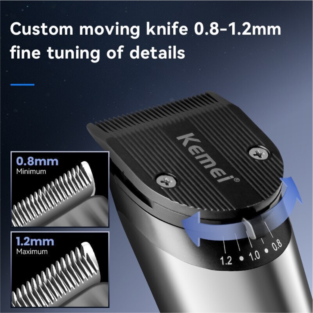 Επαγγελματική κουρευτική-ξυριστική μηχανή. Kατάλληλη για χρήση σε περιοχές όπως τα μαλλιά, τα γενιά και το σώμα. Λειτουργεί με μπαταρία 2000mAh. Χρόνος πλήρης φόρτισης 3 ώρες. Αυτονομία 180 λεπτά. Ισχύς 5W. Διαθέτει 7 χτενάκια για διαφορετικά μήκη κοπής 4-6mm, 7-9mm, 10-12mm, 16-18mm, 22-24mm και 28-30mm. Περιλαμβάνει καλώδιο USB σε Type-C.