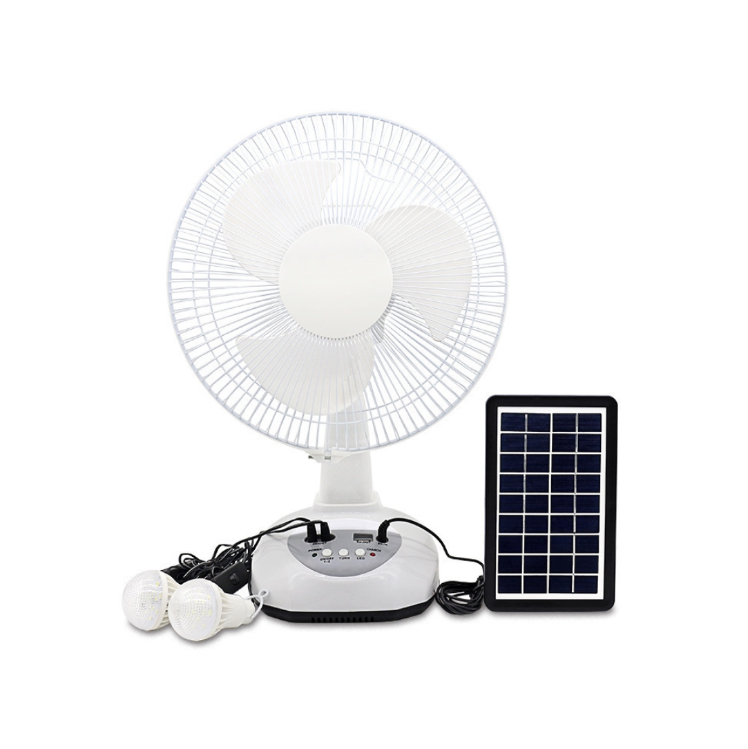 Επαναφορτιζόμενος ανεμιστήρας με ηλιακό πάνελ. Διάμετρος 12". Διαστάσεις ανεμιστήρα 34.8x18x35cm. Σας δίνει την δυνατότητα να φορτίσετε και τις φορητές σας συσκευές. Ιδανικός για camping. Νυχτερινό φως LED. Διαθέτει 2 ταχύτητες. Λειτουργία AC/DC. Υποδοχή USB για φόρτιση κινητού τηλεφώνου. Διαθέτει 2 λάμπες.