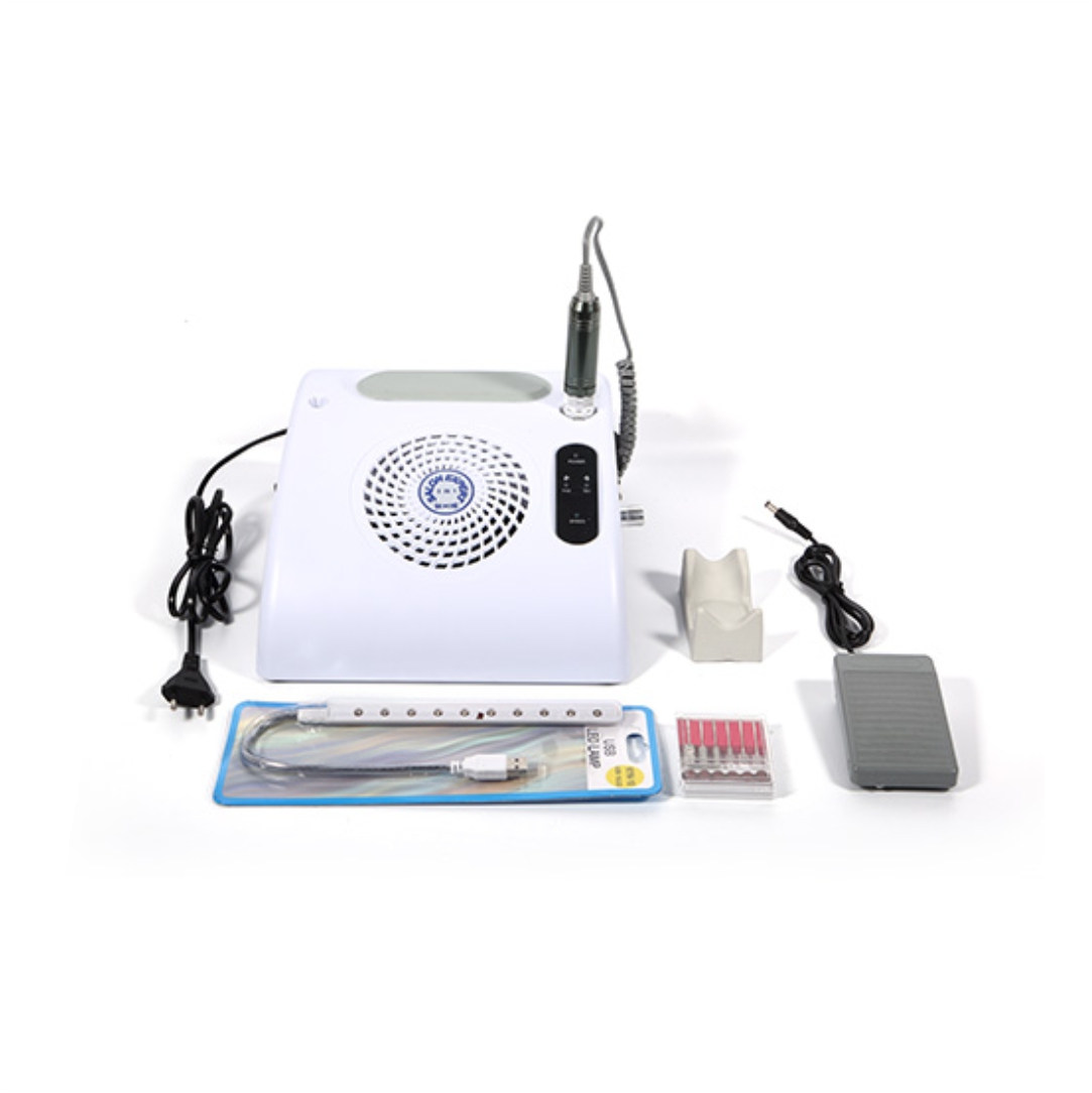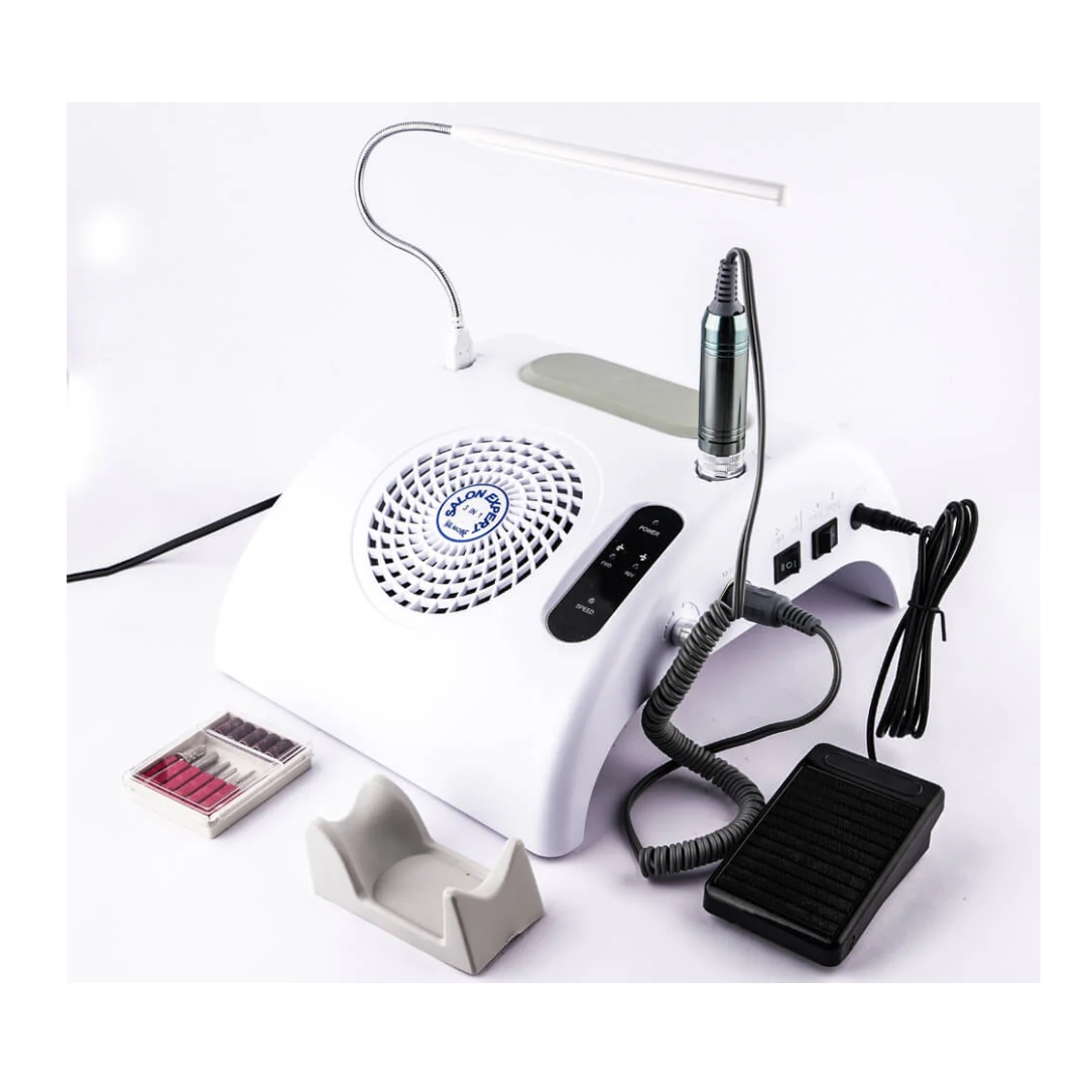 Επαγγελματικός τροχός νυχιών για μανικιούρ-πεντικιούρ. Διαθέτει 6 διαφορετικές κεφαλές. Αφαιρεί το gel, το βερνίκι νυχιών ή τα πετσάκια. Διαστάσεις 25x30x12.9cm. Διαθέτει διακόπτη ρύθμισης ταχύτητας. Περιλαμβάνει λάμπα και πεντάλ.
