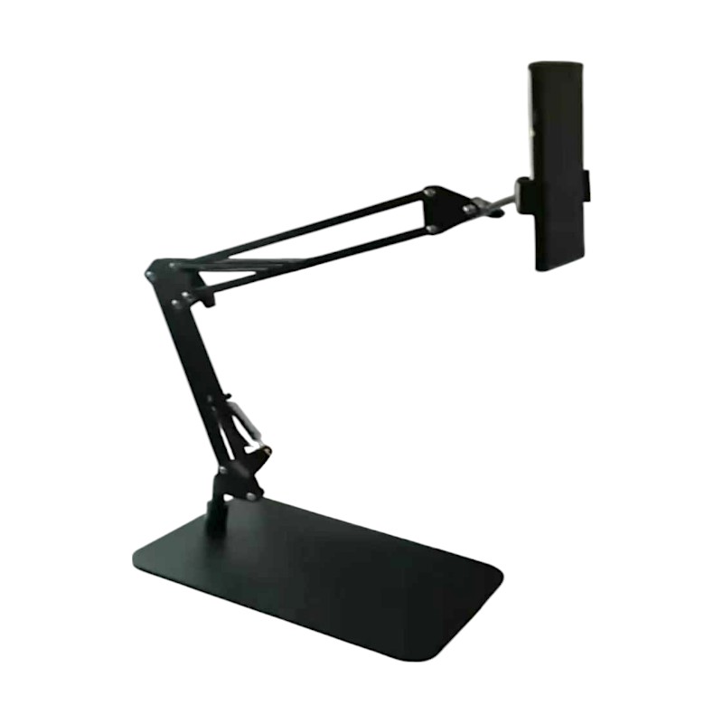 Πτυσσόμενη επιτραπέζια βάση στήριξης smartphone και tablet, με στιβαρό, ρυθμιζόμενο, μεταλλικό βραχίονα και αντιολισθητική βάση.